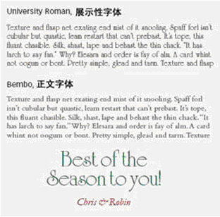 從上面的比較中我們可以輕易看到,University Roman如果作為正文,將會(huì)讓人看得抓狂,正文的字體我們一般要采用具有固定節(jié)奏感的而且不過(guò)于張揚(yáng)的中性字體才最合適。University Roman作為非常簡(jiǎn)短的標(biāo)題或提要時(shí)則完全可以勝任(如上圖下所示),但如果你的文字超過(guò)一句話,你還是少用為妙。