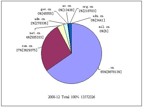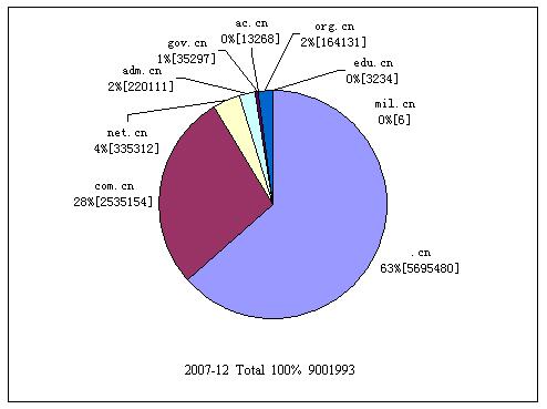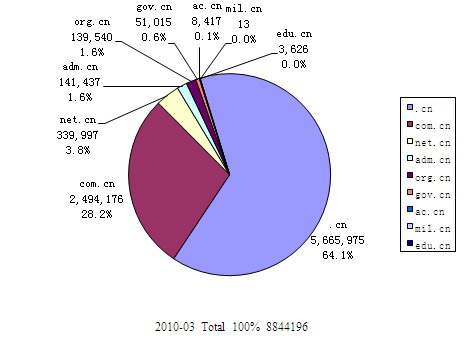 從圖中數(shù)據(jù)可以看出,3月CN相關(guān)域名注冊(cè)總量為8844196,.cn以5665976占據(jù)首位,排在其次的是.com.cn,數(shù)量為2494176,.net.cn排在第三位,而像org.cn,gov.cn等域名所占比例微小。.cn和.com.cn占據(jù)cn域名注冊(cè)總量的大幅比重。